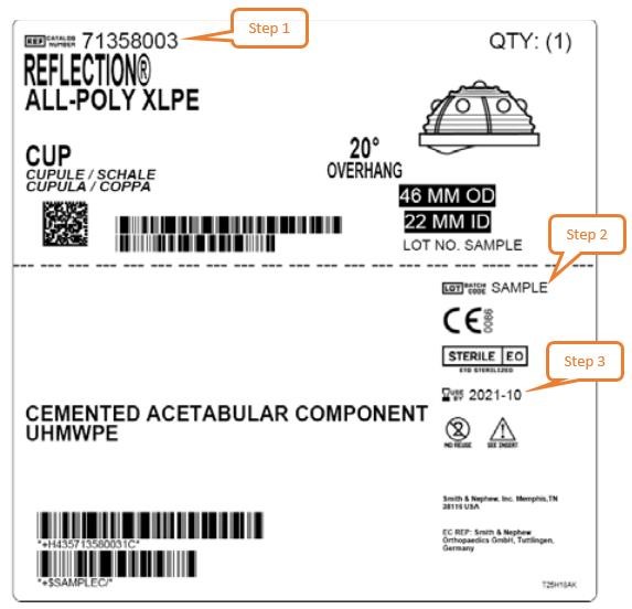 The UDI is composed of a Device Identifier (DI) and one or more Production Identifiers (PI). The DI is found in the Public GUDID database by entering the Catalogue Number found on the product label and the PI(s) are found on the product label. The following steps will illustrate a method of constructing the UDI from a pre-UDI compliant label.
